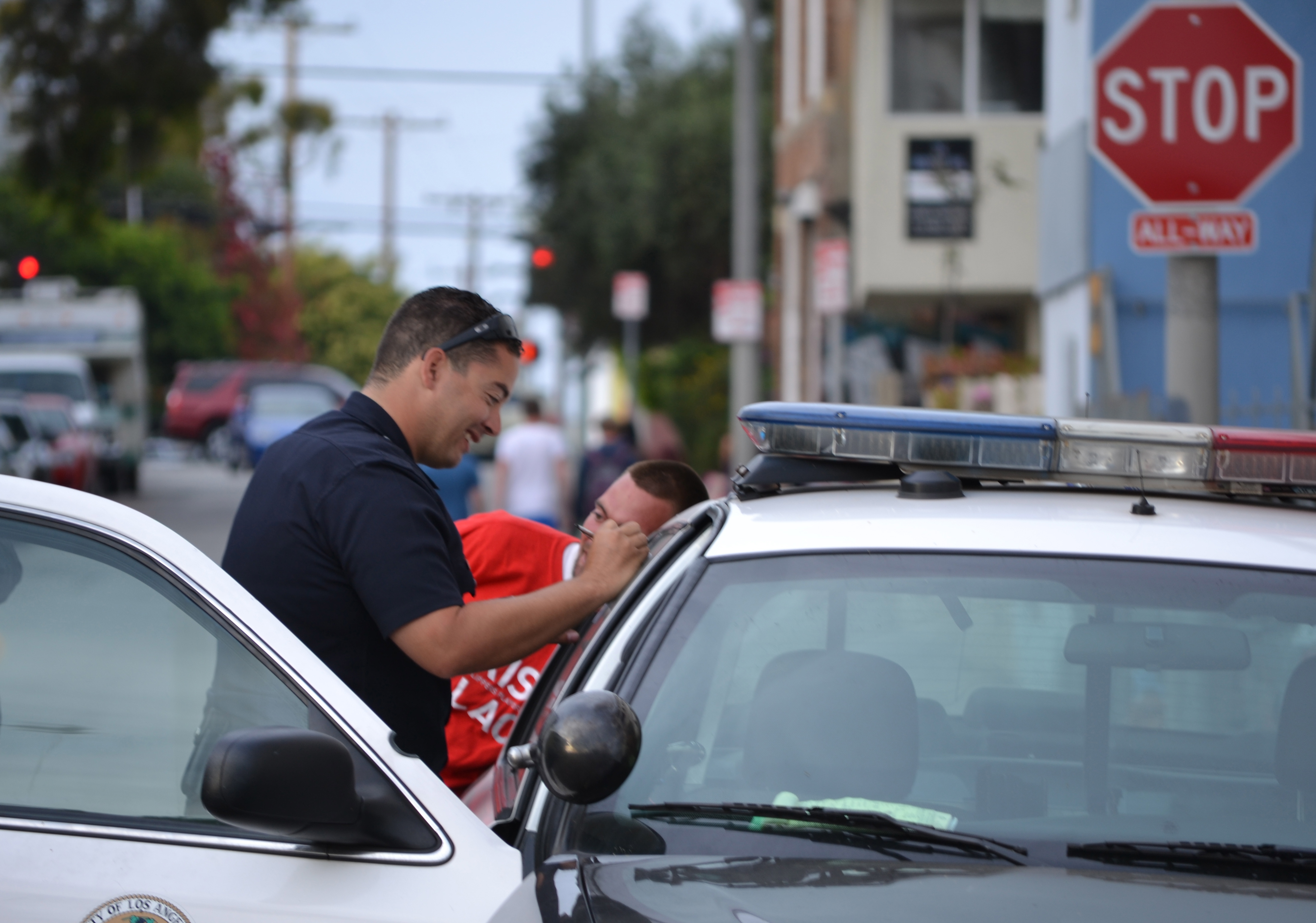 DSC_1046 Published October 1, 2013 at 4382 × 3072 in Cee’s Fun Foto Challenge: Candid Shots A friendly arrest. Venice, CA.