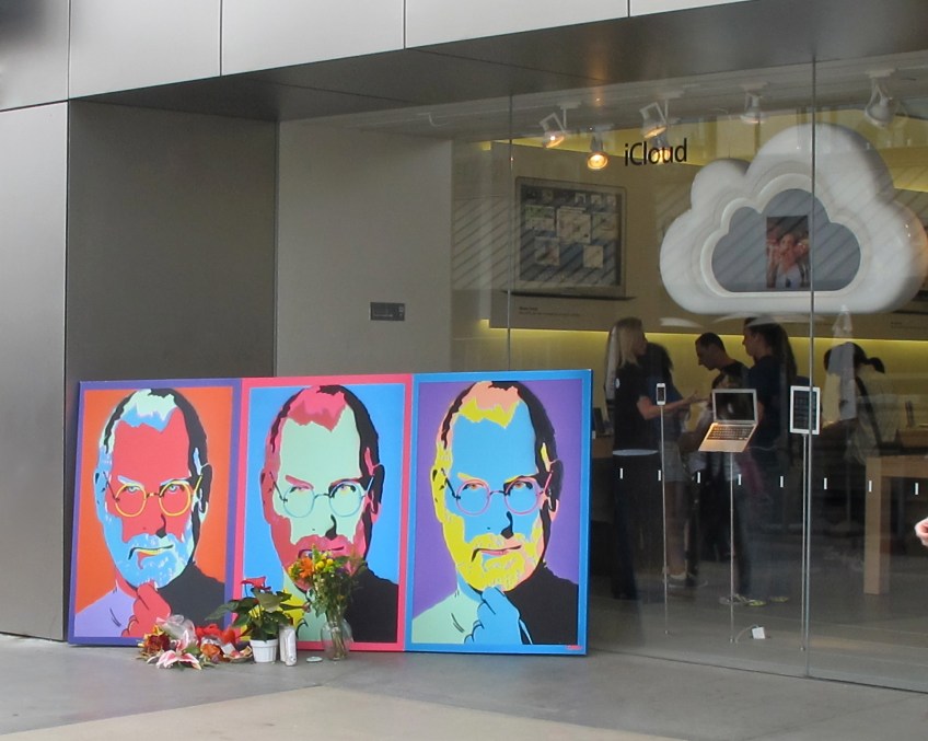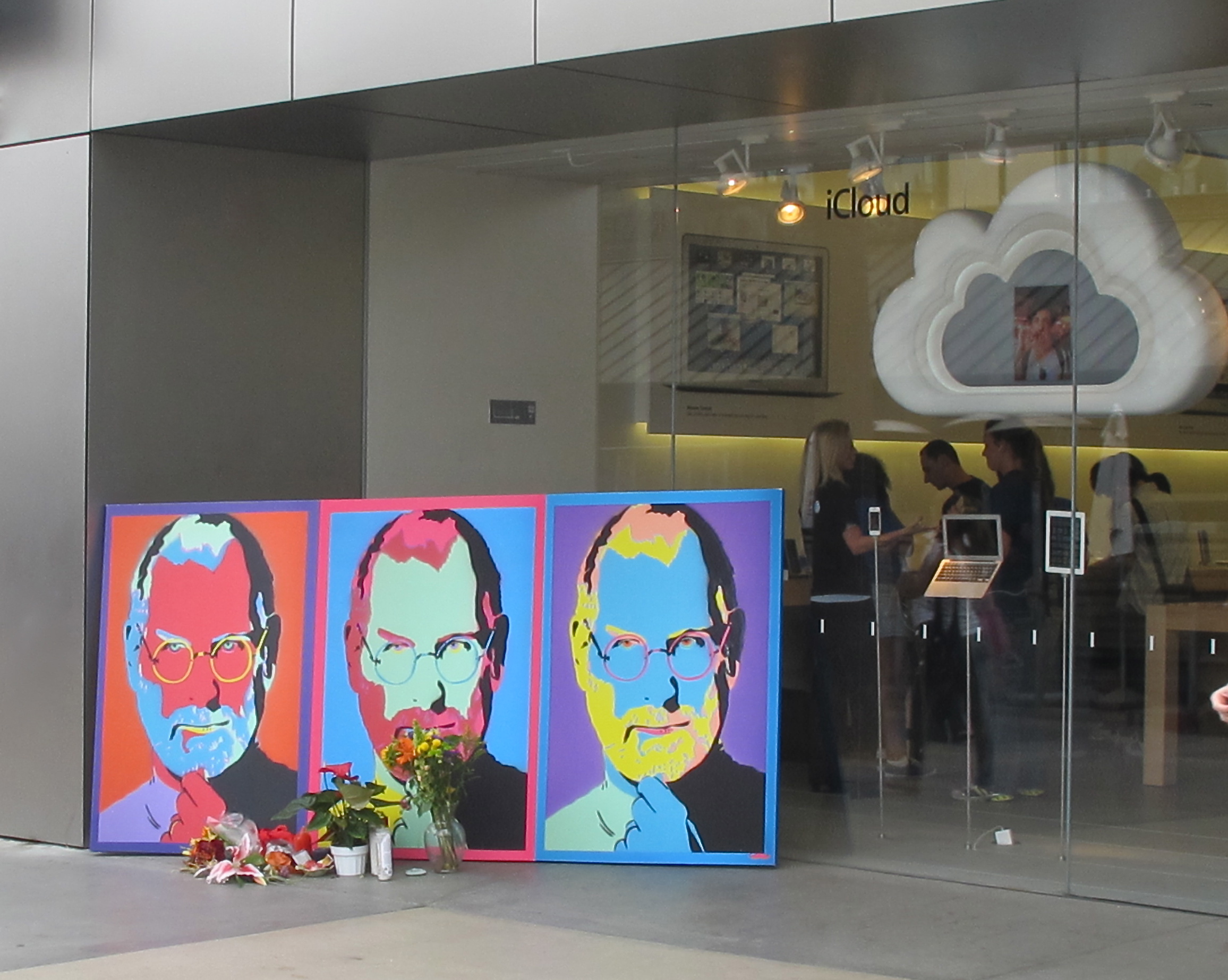 IMG_1763 Published November 20, 2013 at 2312 × 1846 in Cee’s Fun Foto Challenge: Three A memorial for Steve Jobs outside the Apple store in Santa Monica, following his death.