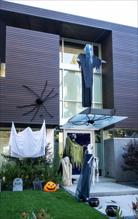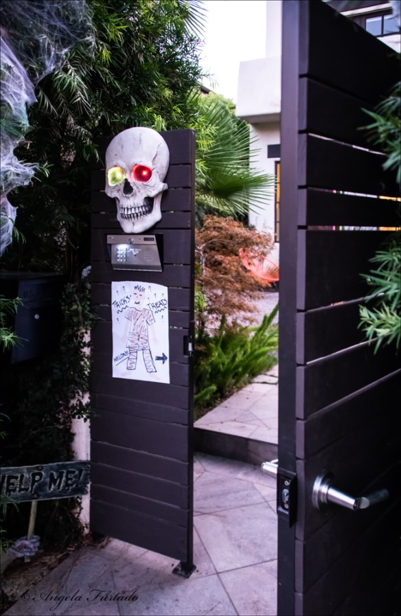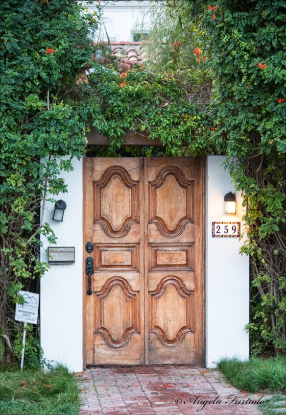 Yesterday, for Halloween, we went to an area in Santa Monica where the shops open their doors to trick or treaters and families flock to the area for a safe and fun celebration. This is also a very upscale area with beautiful houses and people go all out with their decorations. I took great pictures of people and decorations, but thought I’d use the opportunity to get some shots for this week’s Thursday Doors. As a bonus, I’m throwing in a couple of doors with Halloween decorations.